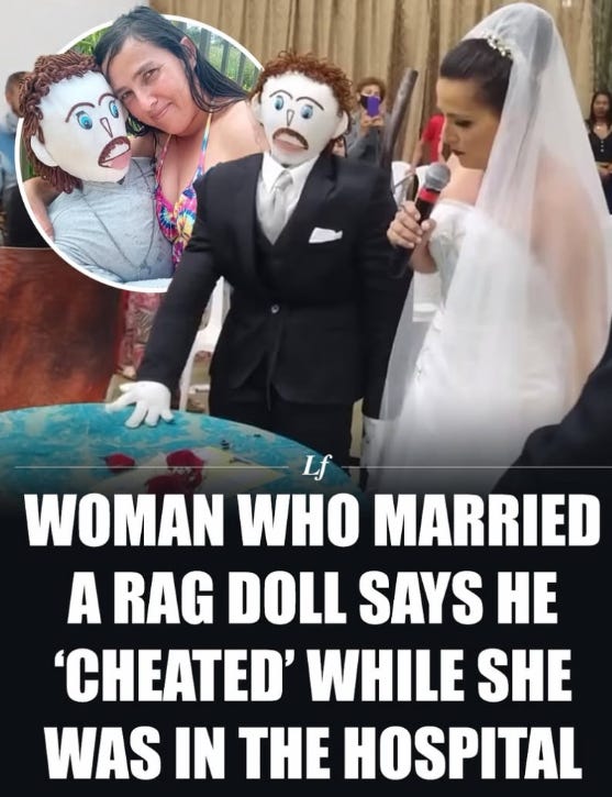 You really can’t trust anyone these days, can you? If you can’t be confident that your rag doll husband isn’t going to be faithful, what hope does everyone else have?
